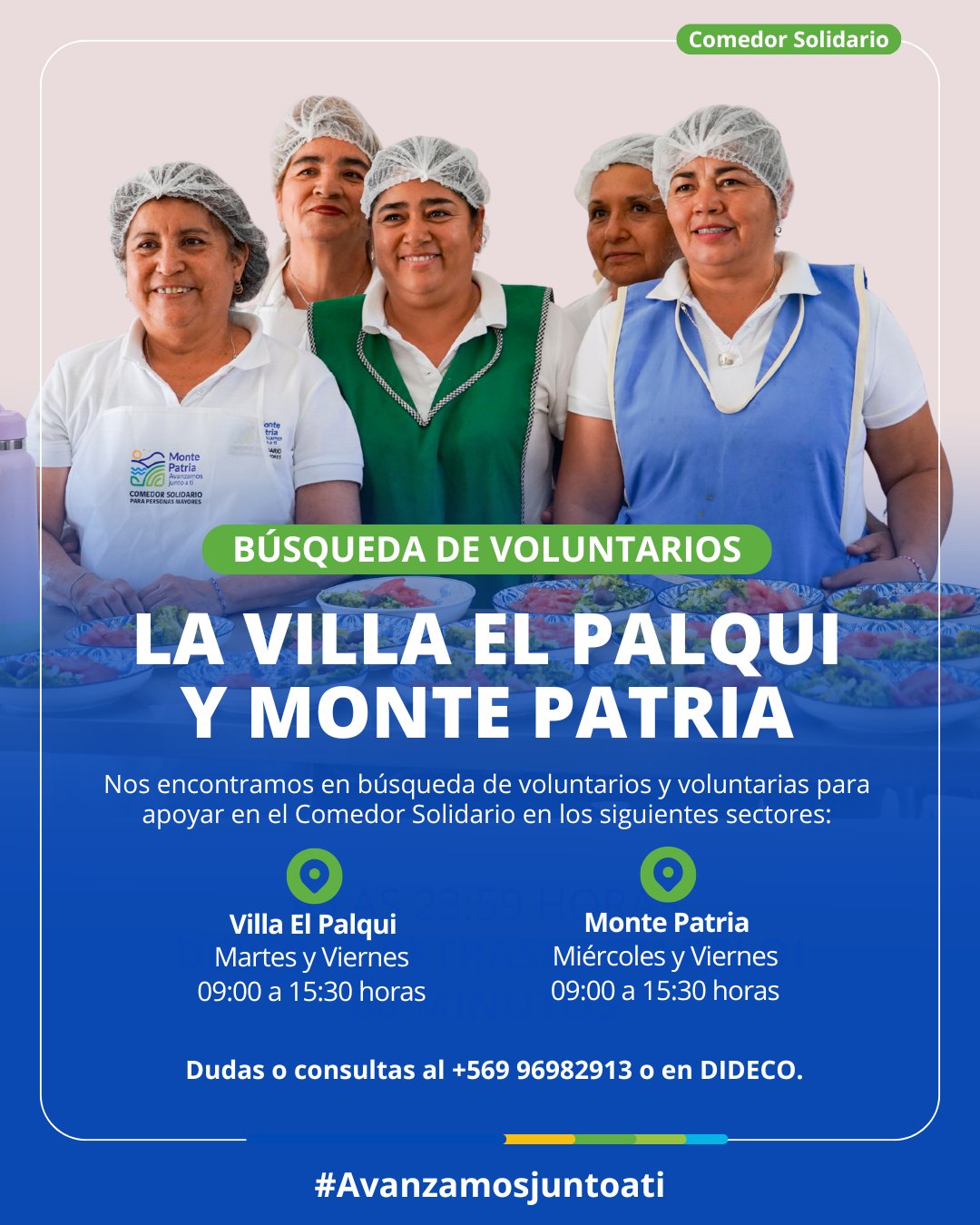 El Comedor Solidario de Monte Patria abrió una convocatoria para sumar voluntarios y voluntarias que apoyen las jornadas de preparación y entrega de alimentos en distintos puntos de la comuna.